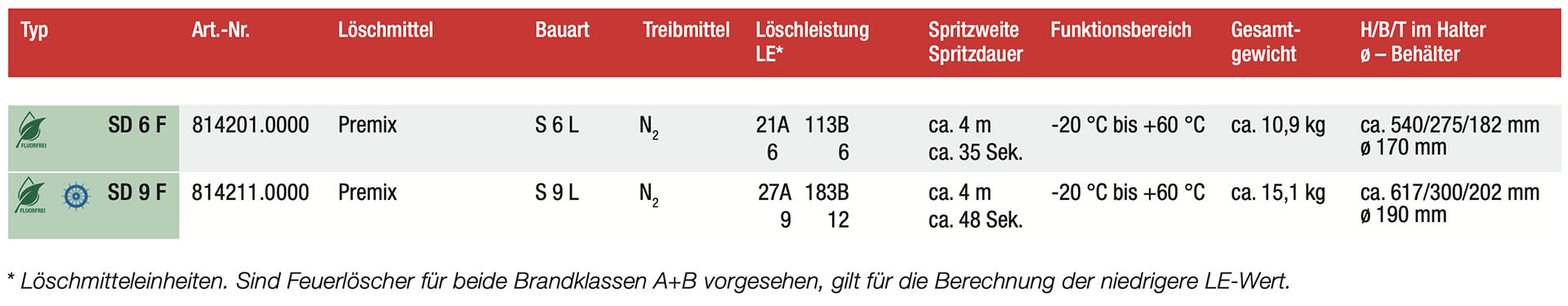 Praktische Geräte der Standardklasse mit hoher Löschleistung